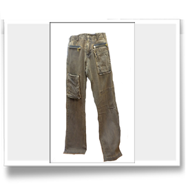 Materiale di partenza: jeans larghi e pantaloni con tasconi dal taglio maschile.