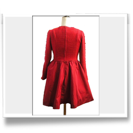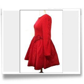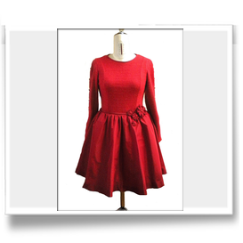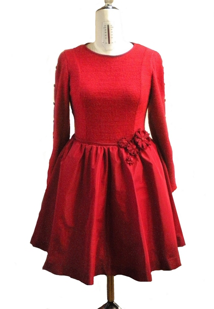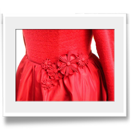 Abito in maglia di lana e taffetà di seta con decorazionerealizzata con la tecnica dei fiori Kanzashi sempre in taffetà. Clicca sulle foto qui sotto per ingrandirle