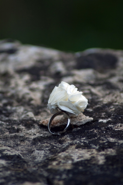 Anello in tessuto di colore bianco che valorizzerà il vostro look con un tocco originale. Adatto a qualsiasi occasione e perfetto per un tocco personale sul vostro abito da sposa.