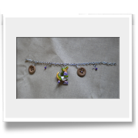 Materiale utilizzati: Sopresa Kinder, bottoni vintage, spilli con capocchia colorata e catena in metallo Nikel Free.