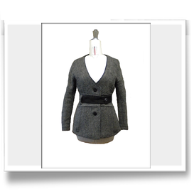 Dopo il restyling: Giacchina lunghezza bacino, scollo a v con bordino nero e cintura in vita.