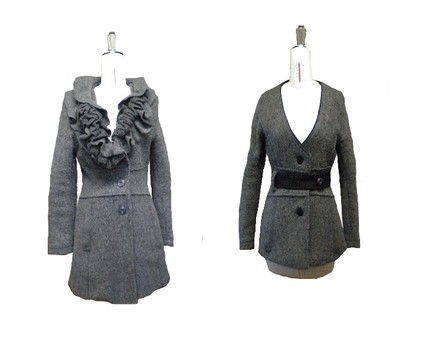 Materiale di partenza: Cappottino in lana cotta lungo sottobacino con ampio collo in maglia e lana