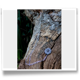 Collana con ciondolo in tessuto che valorizzerà il vostro look con un tocco originale. Adatto a qualsiasi occasione e perfetto per un tocco stravagante al vostro outfit.