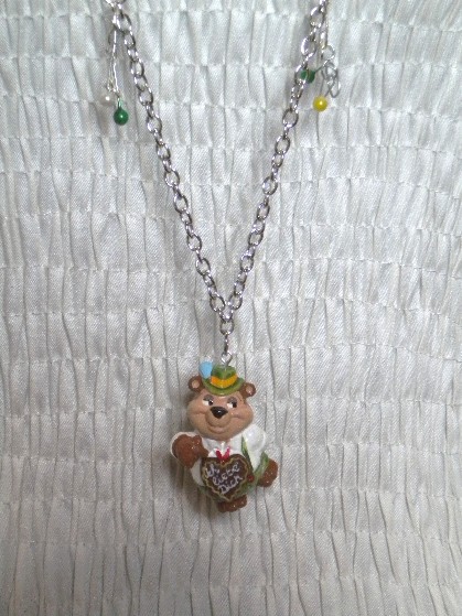Materiale utilizzati: Sopresa Kinder, bottoni vintage, spilli con capocchia colorata, catena metallo Nikel Free.