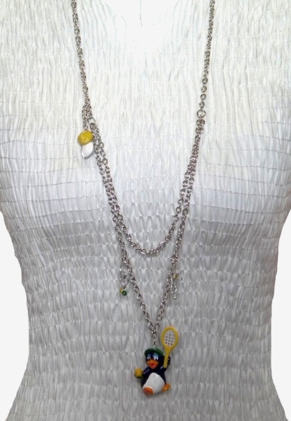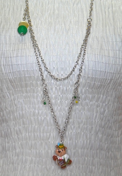 Stesso utilizzo dei materiali ma una forma diversa per questa simpatica collana totalmente handmade.