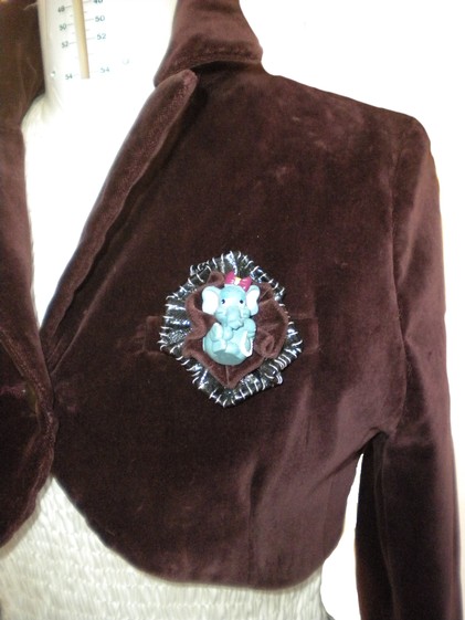 Dopo il restyling: Bolerino corto con bottone metallico e spilla artigianale.