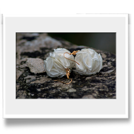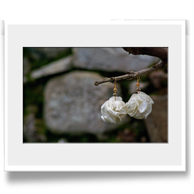 Orecchini in tessuto di colore bianco che valorizzeranno il vostro look con un tocco originale. Adatti a qualsiasi occasione e perfetti per un tocco personale sul vostro abito da sposa.