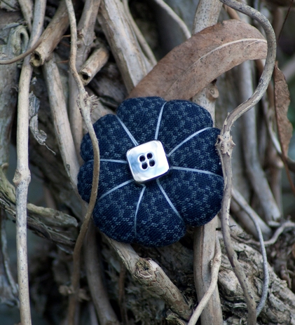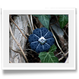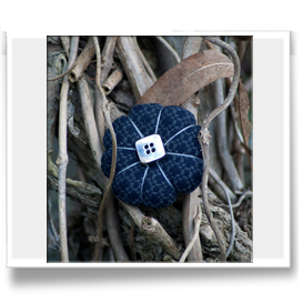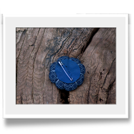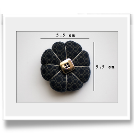 Spilla in tessuto fantasia blu e grigio con bottone vintage color argento che valorizzerà il vostro look con un tocco originale. Adatto a qualsiasi occasione e perfetto per un tocco stravagante al vostro outfit.