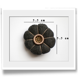 Spilla in tessuto grigio con bottone vintage che valorizzerà il vostro look con un tocco originale. Adatto a qualsiasi occasione e perfetto per un tocco stravagante al vostro outfit.